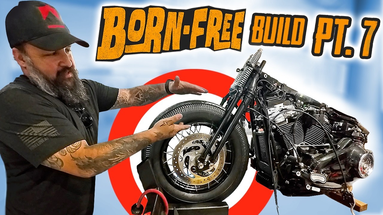 We put some MEATY tires on this bike! Part SEVEN of our journey building a 2025 Harley-Davidson Softail Heritage for Born Free! From chain conversion to new tires and more!