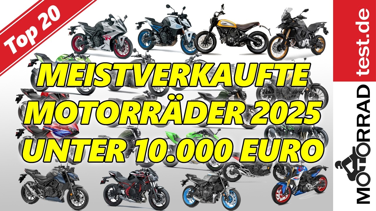Welches waren die beliebtesten Motorräder für maximal 10.000 Euro 2025 in Deutschland. In diesem Video zeigen wir Euch die 20 meistverkauften Motorrad-Modelle zu erschwinglichen Preisen. Ihr werdet überrascht sein, welche teils exotischen Modelle dabei sind…